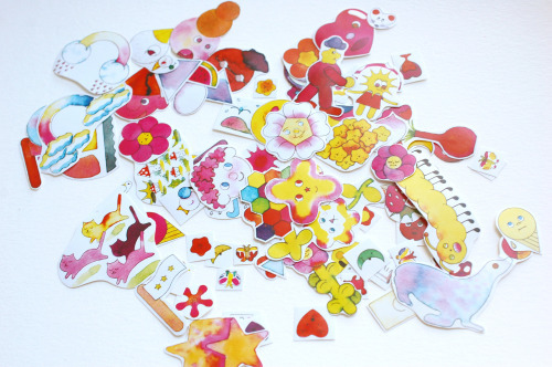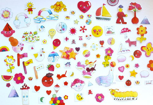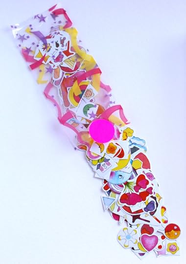 weeeooohh*siren noise* ~ by helping me spread the message around you’ll be entered in a draw for a copy of Confetti along with 95 stickers !!! ~ the one and only FULL SET of all the different stickers you can currently (only) get from my $1 mystery machine, wow !