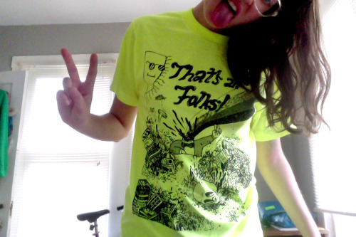 That’s All Folks! NEON yellow tees are now shipping! Thanks to everyone who preordered, yr shirts are now in the mail : ) ***Here I’m wearing a “small”