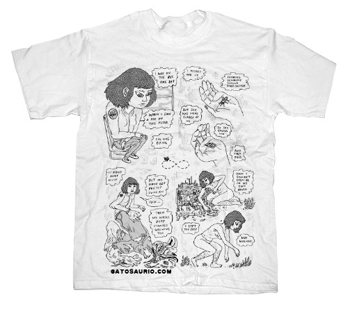 I’m taking preorders for Beeing comic t-shirt, a double sided shirt featuring an edited version of my comic Beeing (which originally appeared in my mini kuš! Borrowed Tails). I’ve always liked shirts that you can read. Turn yourself into a walking comic!
