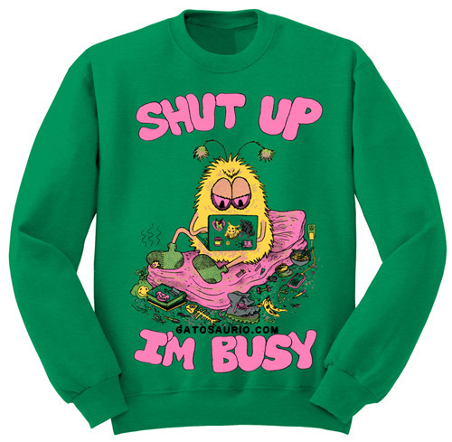 "Shut up, I’m busy!" screen printed sweat shirts coming...