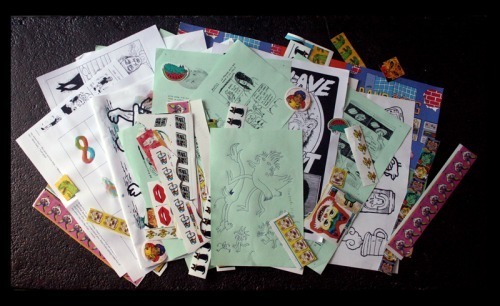 3 Inechi sticker packs, 2 2015 Calendars (1 for you, 1 for a friend), Ojitos Borrosos, Exitstance, Gang Bang Bong 2, Hate Soup, Xarman and the Patrick Kyle Stickerzine. Plus: 3 zines from our personal collection (could be from Mexico, Europe or the States), 3 random Inechi prints and a bundle of Inechi postcards and more fun junk!