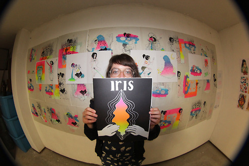 Inés fue la primera invitada al proyecto, editamos en colaboración el libro “IRIS”, impreso en serigrafía, a la par presentamos una exposición con su trabajo gráfico.