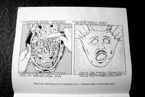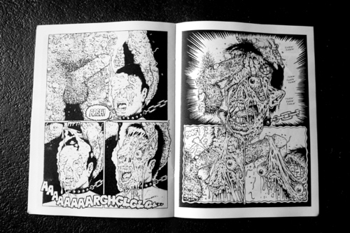 Hate Soup by Edwin Sandoval is now available online! Be ready to have your mind blown and destroyed to a sensless pulp after reading this amazingly violent comic. Featuring comics about: real drug cartel torture techniques (as seen on their own self-made videos), an alien with a dick that turns its sex slave’s faces into goo and a maniac driver with psychotic fantasies.