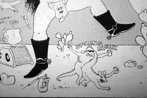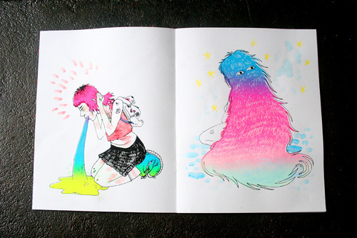You can check out Inés Estrada’s website here and she tumbls at inechi. Estrada has been a contributor to kuš, among other publications. CS was published by Sacred Prism, the zine publishing vision of Ian Harker (tumblr: sacredprism). You can buy Estrada’s comics at Gatosurio.