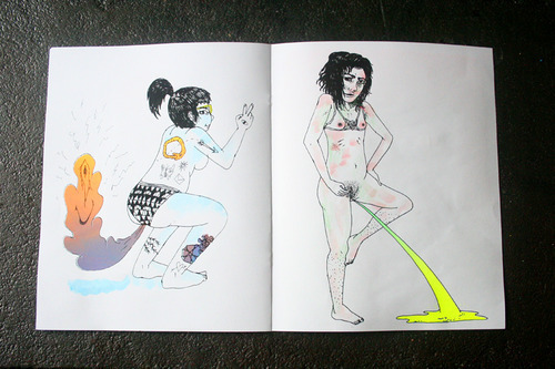 we’re almost finished with IRIS, silkcreened in black with neon colors. im drawing and painting on each page from the whole edition of 60 copies. debuting in the states at RIPExpo!
