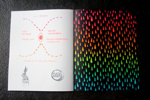 IRIS is a project I made in collaboration with Edición Instantánea in Morelia, Michoacán. We produced a silkscreened edition of 60 copies of this zine, and I drew and watercoloured extra stuff on each copy. Each zine is huge! (26.5 x 33 cm / 10.4 x 13 in) so, because it would be a hassle to mail that, and because I only got very few copies for myself, it will not be available online. If you’re interested in getting a copy, you can get it at: