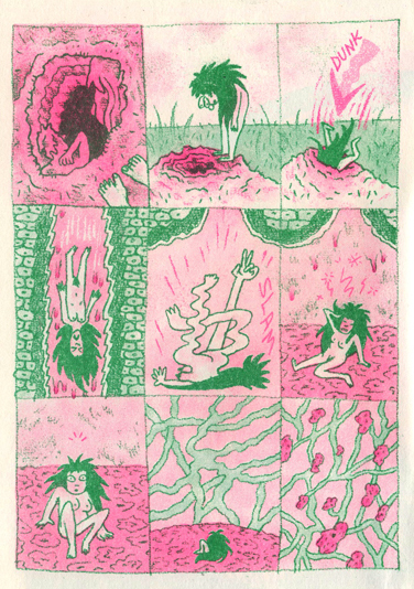 Notes: My scanner can’t handle neon, so I’ve used some publicly available scans for the images of the comic. I think I’m in love with neon colored riso-printing, but it doesn’t make for very good blog content.