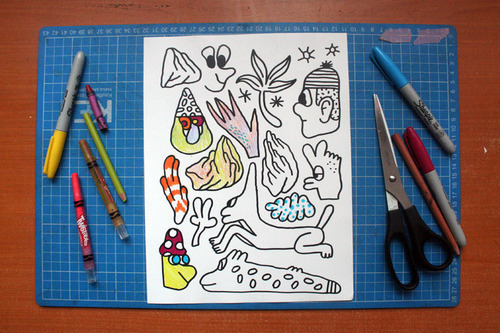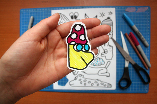 New Stickerzine by Patrick Kyle! This package comes with 4 sticker sheets filled with Patrick Kyle’s unique characters, ready to be coloured, cut out and sticked in your favourite surfaces. Plus, 5 full colour stickers by Patrick to inspire your future creations. Fun for kids and adult-kids alike!