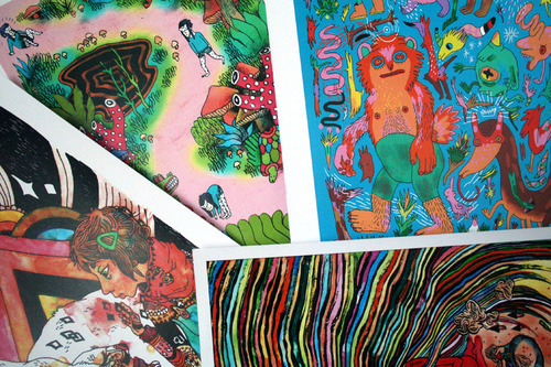 New prints by Inés Estrada! Nineteen different designs to choose, all printed in high quality laser over an almost cardstock, matte paper. Ready to be nailed, taped or framed to your walls. Each goes for $10 with world with shipping included!
