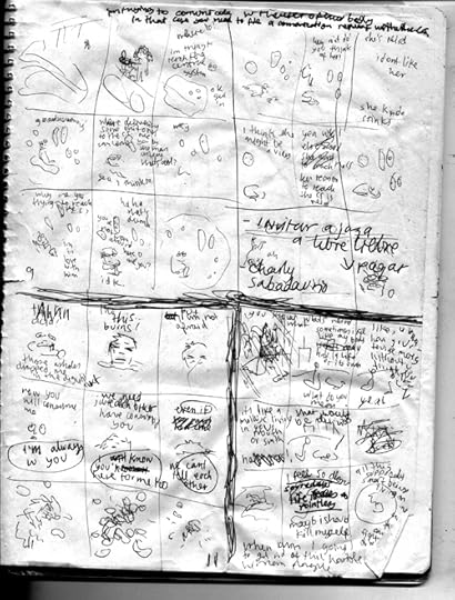 This is a page (containing 4 pages) that I used to sketch out CS. This is pretty much how I plan my comics, I start out by writing ideas and then I put those ideas into these horrible thumbnail pages which are almost unreadable (even to myself). I’m just really impatient and can’t stand to put any more into the sketches than this. From this I go straight to the final pencils (which I don’t even ink). But yeah, at least I do have a process ok?! I’m not like that Patrick Kyle…….. ; ^ P