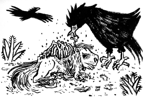 "Vultures feeding off dying pony" Based on something I saw in Texas in March this year and part of the series of drawings about nature and destruction/rebirth I compiled in my zine Ascension Horizontal