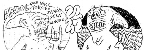 thom sent me this picture of some tattoos he got of drawings of mine!! i love it when people scar their skins with my drawings : )