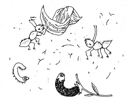ants carrying a lettuce leave. more from my sketchbook at my...