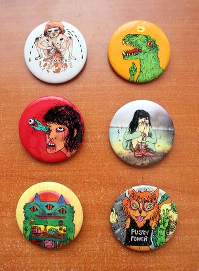 hey hey i have some new pins for sale!!! these are big sized (2 in / 4.5 cm) and you can get 3 for $6 or all 6 for $10. This includes world wide shipping and a free Lapsos postcard!