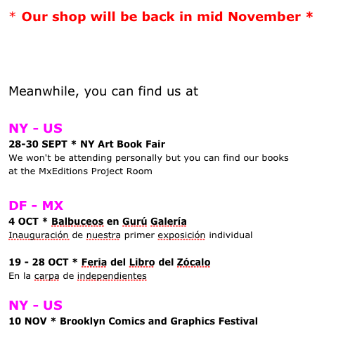 You will still be able to order Ojitos Borrosos and the first and second issues of Gang Bang Bong even after the closing, since we have literally hundreds of them and they’re more than ready to be mailed.
