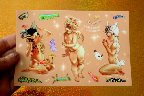 my sticker pack is finally up for sale on gatosaurio.com! the pack comes with a sticker sheet with 3 large stickers and lots of small ones, and two larger metallic stickers ! the stickers are waterproof vinyl and really nice quality! I’ve had to miss a lot of work lately due to health issues so I can really use all the help I can get right now, so please buy them ! thank you so much~~~~