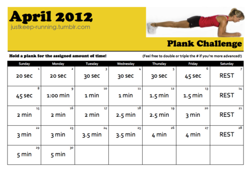 Now, for the month of February, how about we try a plank challenge. At the end of the ab challenge, we had to do a 2 min plank. It was tough but we managed. Now, we get to start out slow again.