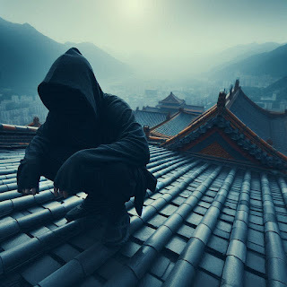 Moonlight glinted off the slate tiles of the rooftops of the city. A lone figure, shrouded in black crouched low on one of them, surveying the array of buildings that stretched downhill toward the water. A slight breeze wafted up from the harbor, carrying with it the scent