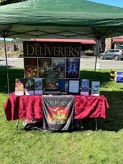 It also marked the debut of my new 6-foot Deliverers banner that I'll be using for outdoor shows. It looks really nice, and I've had multiple comments on it. I think I missed a slight opportunity by not making it two-sided, but it definitely draws attention, as does the video display and wireless speaker that I've started using to play my video book trailers. The music attracts folks and then they stay to find out about the books and perhaps watch the videos. I'm thinking about maybe making a video incorporating excerpts from my two audio books. What do you think?