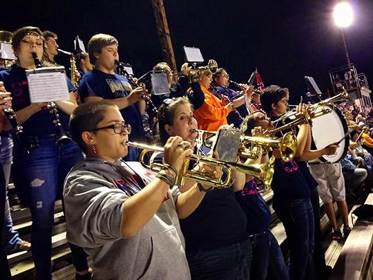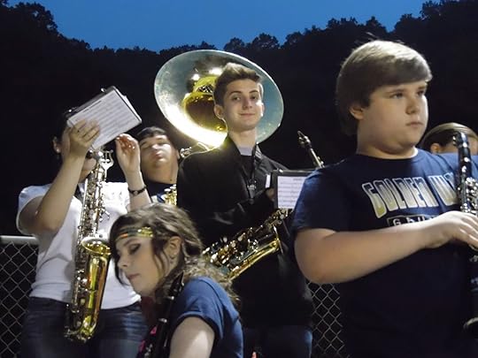 High school football season is in full swing, and last night I attended a game as an extraordinarily proud Band Mom. My son is a high school senior and is the bands only tuba player and as if that’s not reason enough, his sister is his band director. As I walked in with the band, I could feel a collective sense of walking into the Lion’s Den, since we were as my husband so eloquently said, “out-manned, out-classed, and out-gunned.” (Yes, we lost 66 – 8). The band members knew they had to play their hearts out – and they did, especially in the fourth quarter when you could see the spirits of the team disappear like a balloon spiraling into the sky.The best part of last night’s game didn’t take place on the field, but rather all around me. From my seat, I had a birds eyes view of six little boys engaged in their own imaginary football game. I have no doubt, that no boy played harder on the field than those six little boys who conducted their game on the outside of the fence near the end zone. They were out of the way of the foot traffic so they could play without being interrupted and play they did! Sweat ran down their grubby faces, flushed red with excitement and determination. At first I thought they had a mini football, but then I realized their football was imaginary. No matter. Still, they jumped into the air to catch it. They cuddled it next to their chests. They held it with their arms tucked close to their sides. They could not have protected that imagined ball any better than a real one.
