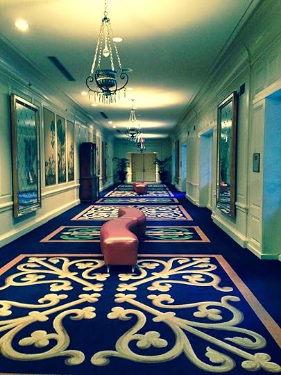 I got on the elevator, which by the way has a crystal chandelier, and went in search of my room. The moment I stepped out, the sensation that I had seen this long twisting and turning hallway before washed over me. Suddenly, I was in the movie “The Shining” and I will confess, I sprinted past room 237! (Stephen King fans will remember what was inside of room 237!) When I began to write this blog, I had to convince myself it was okay to type. Pictures of Jack Nicholson typing, ‘All work and no play make Jack a dull boy,’ ran through my head. Thank goodness it’s not winter! If one snowflake fell I would not be able to sleep here tonight!