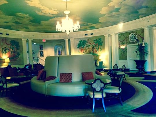 Today, the writer in me rose up and stretched. The atmosphere at The Hotel Roanoke kicked my senses into overdrive, and I held on for an exhilarating ride! Tonight I will sleep in this hotel, rich with the spirit of another time. Perhaps my dreams will be of a world that exists only in our history. I would much rather dream of dancing in the ballroom under a ceiling painted to look like a summer sky than be a character in “The Shining” who has to open the door to Room 237!