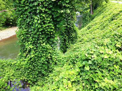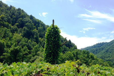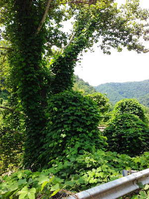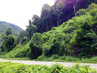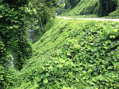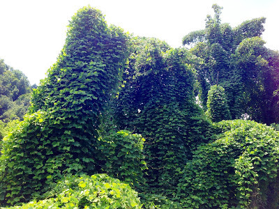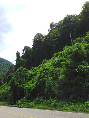 High Summer is the time of year when the humidity becomes so oppressive it hangs over the land like a wet blanket; and the cicadas sing loud and long praising the heat. By August, the heat in southwestern Virginia slows everything down to a crawl, and people languish on their porches after sundown, sipping glasses of ice cold sweet tea. This holding pattern in late summer when the days are long and the heat slows us to a crawl, has no effect on one of southwest Virginia's plants. In fact, Kudzu thrives in the heat and by high summer, it has devoured everything in its path.