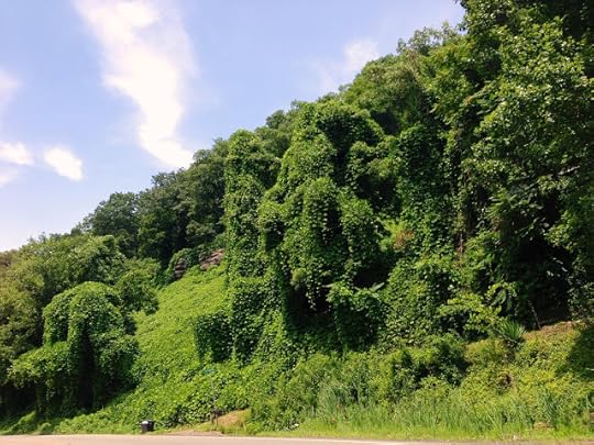 By August, the trees, hillsides, roadsides and creek banks are covered by Kudzu. Every inch of the countryside is a dazzling green landscape.