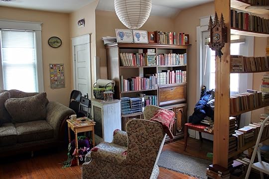 The entire house is filled with books, but the rooms are also "homey" and of course, inviting. It's not unusual to see a cat sunning in front of a window, totally unperturbed by the people looking at books right next to her.