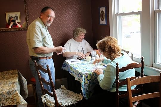 It was next to windows that looked out over the back of the house. I sat there and enjoyed the breeze wafting in the window, bringing with it the sounds of the neighborhood - dogs barking, cars passing, people outside enjoying the day - while I visited with everyone. Somehow, the people didn't "feel" like customers who were there to buy books, but rather friends coming to visit.