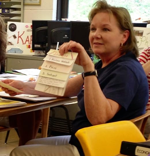 Teacher Consultant Amber CouchTC Robin Justus ended the workshop with her presentation - Book Arts. Robin brought materials and led us through making books of all shapes and sizes while giving us strategies how to use them with our students. We practiced making books and had many examples to take back to our classrooms.