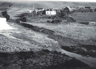 Old Ranch. The barnyard is out there.Near the . . . ummm . . . barn.My very first ranch memory occurred when I was two. I had my new little red cowboy boots on. I was ready for anything. Dad was out in the blacksmith shop and I knew he would be happy to see me. Certainly, I would be happy to see him and though there were a fence and a large barnyard between us, I decided to make the journey. I'm afraid I rather discounted the importance of . . . the Cow.Oh, I knew she was there. I just didn't think it was important.
