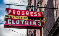 One and one-half hours from the Stringam ranch is the city of Lethbridge, Alberta.When the Stringams really needed to shop, that was the place to go.There were tons of great stores . . .Eaton’s.Woolworth’s.Kresge’s.Hoyt’s.Woolco.But, if one wanted a bit of adventure, the best was Progress Clothing.Progress was our favourite place to shop.It wasn’t what you would call a ‘high-end’ store.It catered more to the farmers and ranchers in the area.The people needing sturdy, serviceable, work apparel.Tough boots.Heavy leather gloves.Progress consisted of a long, open room with thick windows facing the street.Dangling fluorescent light fixtures.And huge tables set evenly about the old-wood flooring.Great piles of clothing were stacked on every available surface.More or less grouped together according to type and size.Colours were limited. Most articles were blue, green, black or tan.But choosing pants, shirts or one of the myriad other items that went with working on a ranch was only the first (and less exciting) part.The true fun of Progress Clothing began when one was holding one’s prospective purchase.And a salesman approached.Because the ‘suggested retail price’ on the tag was just that.A suggestion.From there, the haggling commenced.“How much for these pants?”“The tag says $7.00.”“But I’m buying four pairs.”“Hmm . . . okay, $6.00.”“Really? That’s the best you can do?”“Hey, I’m trying to feed my family!”“And I’m trying to feed mine!”“Okay. Okay. $5.00. But that’s my last offer.”“$4.50?”And so it went. It was . . . fun.If you were lucky, you would pay half of what the original sticker stated . . .I hadn’t been to Progress in quite a while.I had discovered some of the specialty ‘Western’ shops.With their high-priced ‘stylish’ western clothes.And I had my own money.And no encumbrances.Then, shortly after I was married, my Husby (a newly acquired encumbrance) and I, feeling both the need to be economical and the desire for some adventure, stopped at the great old store.I found a pair of warm, winter boots.Practical boots.My Husby held them up to the salesman. “How much?” he asked.The salesman stared at him.“How much?” he repeated.The salesman leaned forward and touched the tag. “$8.00,” he said.“Will you take six?” my Husby asked.The salesman frowned. “The tag says $8.00,” he repeated.“Oh. So . . . $8.00?”“Yes.”“Oh.”The store and the clothes were the same.And the prices.But the important stuff was different.