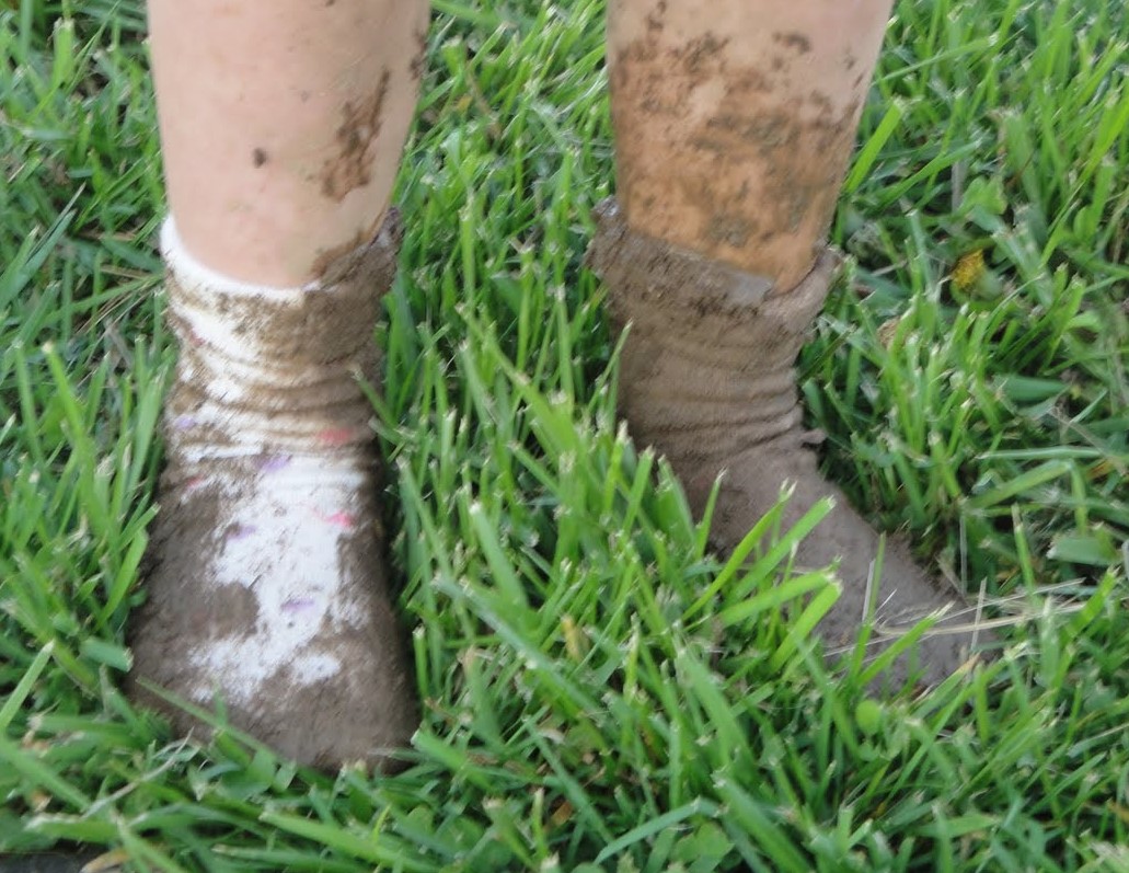 I, too, looked down. Muddy socks and pants, but no shoes. Huh. Maybe my lace-tying wasn't as good as I thought.