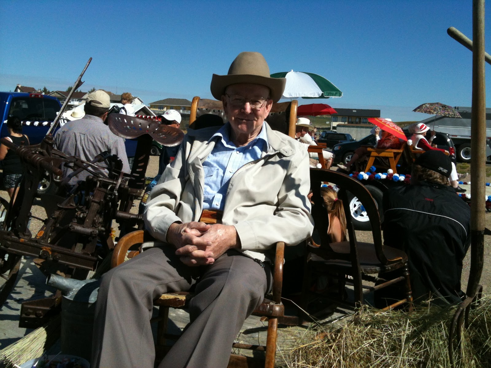 Daddy at play. I know this is going to be hard to believe, but I just spent six whole weeks dressed in shorts.In the middle of the Great Canadian Winter.I wouldn’t believe it myself if I hadn’t experienced it.Of course I was nowhere near Canada when it happened.Still . . .On the last day of our holiday I was lamenting to Husby about having to put on long pants to go home. And it reminded me suddenly of my dad . . .Daddy dressed pretty much the same every work day.Neatly creased blue jeans. Tough but tidy work shirt.Laced up work boots.Gloves. Hat.On Sundays, he wore neatly pressed dress pants and crisp, white shirt and tie. Or a full suit.Polished boots.No gloves. Dress Sunday cowboy hat.When the rest of us swam, he watched and guarded, fully clothed.My point in telling you this is: I saw Daddy’s bare legs maybe half-a-dozen times in my life.In. My. Life.Daddy didn’t go for shorts.Even in the towering heat (it does happen) of a three-week Canadian summer. Maybe he was self-conscious about the colour of his legs? Glistening white, as would be expected of the skin of a redhead that never, ever sees the light of day.Skinny? Oh, they were well-muscled. But riding horseback all day, every day, makes wiry muscles as opposed to massive ones.Hairy. Okay, this one goes without saying. Everyone’s legs are hairy.Ahem . . .Whatever the reason, he was never seen in shorts.Until that day . . . (cue music: Dun Dun Duuuuun!)Daddy was living in a senior’s apartment complex in Taber, Alberta.It had been near his sweetheart when she was confined to a nursing home in her last years.He stayed on after she was called Home.He liked it there.Enjoyed the activities. The amenities.The peace and quiet.Liked the people.His neighbours were affable, social people. He and they got along well. Mostly.On that day, he and his neighbour stepped into the hallway at the same time.His neighbour stopped. Stared.Daddy was wearing shorts.Exposed were about 16 inches of unnaturally white skinny-ness.The neighbour grinned. “Mark!” he said. “Are those your legs? Or are you riding a chicken?”Yeah, I’m pretty sure those shorts went right back into hibernation.P.S. Those skinny ‘Stringam’ legs have been passed down. My youngest sister got them. And the other day, I was watching a group of my grandkids running along, draped in a sheet that covered all but their lower legs and feet.There, in the middle was a pair of skinny, white legs.When we pulled off the sheet and matched legs with owners, I realized that my #3 grandson is all his grandfather ever was.And more.
