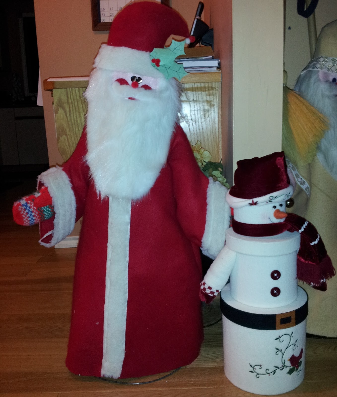 The Season has begun . . .A few years ago, my Husby, a slightly Santa-esque man, was asked to play Santa Claus at a local party.He discovered that he loved it.The rest of us discovered that he was very good at it.A new career was born.He offered to pay for the materials for a, to put it into his words, nice suit.I complied.The next Christmas, he asked if I would be willing to make myself a matching 'Mrs. Santa' outfit.After a bit of head-scratching and a trip to the fabric store, I again did as he requested.Mrs. Santa appeared.And the two of us have had fun with it ever since.Each year, our portrayal of the famous couple gets a little more . . . detailed.Three years ago, he began to grow out his hair. In August. (Now he sports his 'Santa' beard year round!)Then we made a trip to the hairdresser to get him, and myself, dyed white.Oh, the sacrifices he makes!