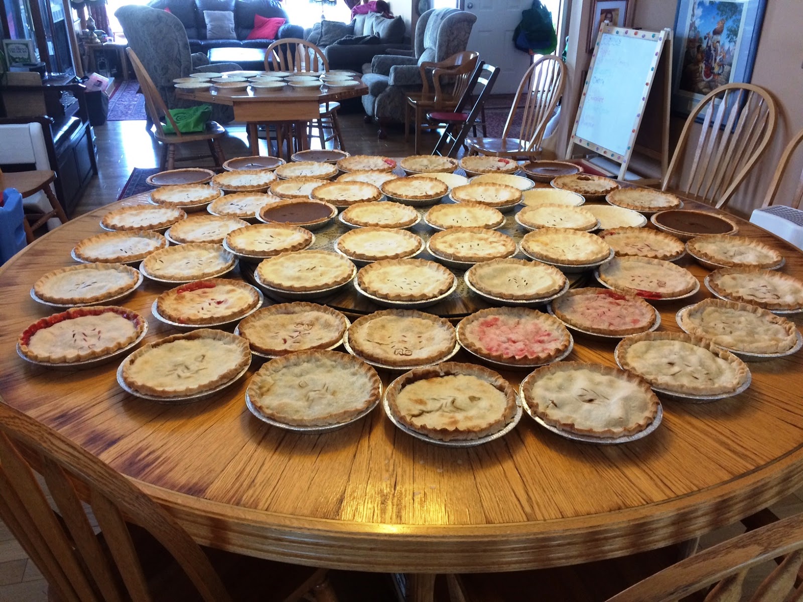 In other news:Tonight is PIE NIGHT!The second most magical night in the Tolley year.71 pies this year. Apple, Strawberry/Rhubarb, Cherry, Blueberry, Cherry/Blueberry, Peach, Chocolate, Coconut-cream, Lemon and pumpkin.Wish you were here!