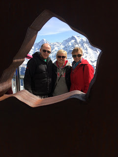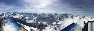 We explored the country side and then took the 'Bond' ride from Stechelberg to Schilthorn. And for a few hours, stood on top of the world!Watched the skiers. The day was super warm, but the snow wasn't too slimy. Yet.