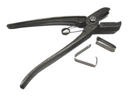 Tools for tagging and/or causing troubleAs the only veterinarian for 100 square miles, Dad was called upon for many different animal situations.Some dire.And some not so much.It was also his job to carry out the government programs of the time.Brucellosis (a particularly nasty infectious disease caused by bacteria) testing, for one.And vaccinating for whatever was currently deemed important.I should probably mention that, when a government vaccine program was initiated, the bottles of vaccine were sent along with little, metal tags.After an animal had been properly vaccinated, a tag was clamped at the edge of one ear.Proof of the deed.Both duties involved long hours standing beside a chute - vaccine gun in one hand and tagging pliers in the other - while cattle were shuffled and sorted.One herd was taking a particularly long time.Unseasoned help?Uncooperative animals?Whatever the reason, Dad found himself standing for long periods of time with literally nothing to do.Not a good situation for someone like him.Mischief happens.The owner had turned away, trying to see over the fence at what was going on in the next pen.Dad glanced over.The coat and coveralls the rancher was wearing were . . . right there. Together.Hmmm.He reached out with his tagging pliers. And tagged.Deftly (Ooh, I like that word!) and effectively pinning the man's coat and coveralls together.The work continued.Cattle were pressed forward down the chute.Vaccinated and tagged.And released.Finally, the long job drew to a close.As Dad was packing away his instruments, the rancher invited him inside for a chat and a hot drink.I should mention here that the people who live in the wide stretches of ranching country are among the most welcoming and friendly in the world.Any excuse is a good excuse for an invitation to visit.One of the very best things about said world.Back to my story . . .Dad accepted the invite - albeit reluctantly. He knew what was coming . . .The two of them walked to the farm house.And into the back porch.Dad removed his boots.The rancher did the same.Dad removed his coat.The rancher . . . didn't.Oh, there was an attempt.Some grunting and a couple of gruff words.But, for some reason, the man and his coat simply couldn't . . . part company.So to speak.Finally, the man stripped off his coat and coveralls together.And discovered the little, metal clip that held both of them firmly together.He turned an accusing glare on Dad.Who, with a wide grin on his face, found somewhere else to look.The tag was easily pried off.And coat and coveralls hung neatly – and separately – in the closet.But the prank was never forgotten.For years afterward, whenever vaccinating, my Dad, veterinarians in general, the Government, ranching, chores, or ranch life were mentioned, that rancher would recall the time that Dad stapled him into his clothes.The days come and go on a ranch.But a good prank goes on forever.