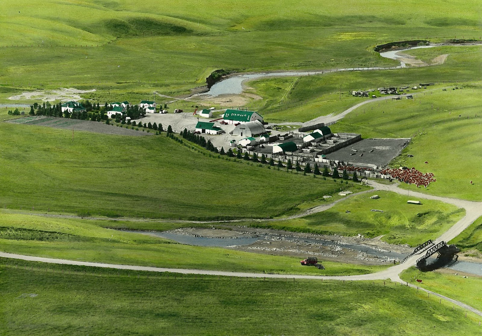 My big brother and me.I'm the one in the dress...I was privileged to grow up on one of the last of the large old ranches in Southern Alberta. Situated halfway between the towns of Milk River and Del Bonita, it covered two-and-a-half townships, close to 92 square miles. Our closest neighbour was over nine miles away. A little far to drop by to borrow a cup of sugar, but close enough to help in the case of a real emergency, which was not uncommon on the large spread we ran, and with the number of people involved in the daily workings.