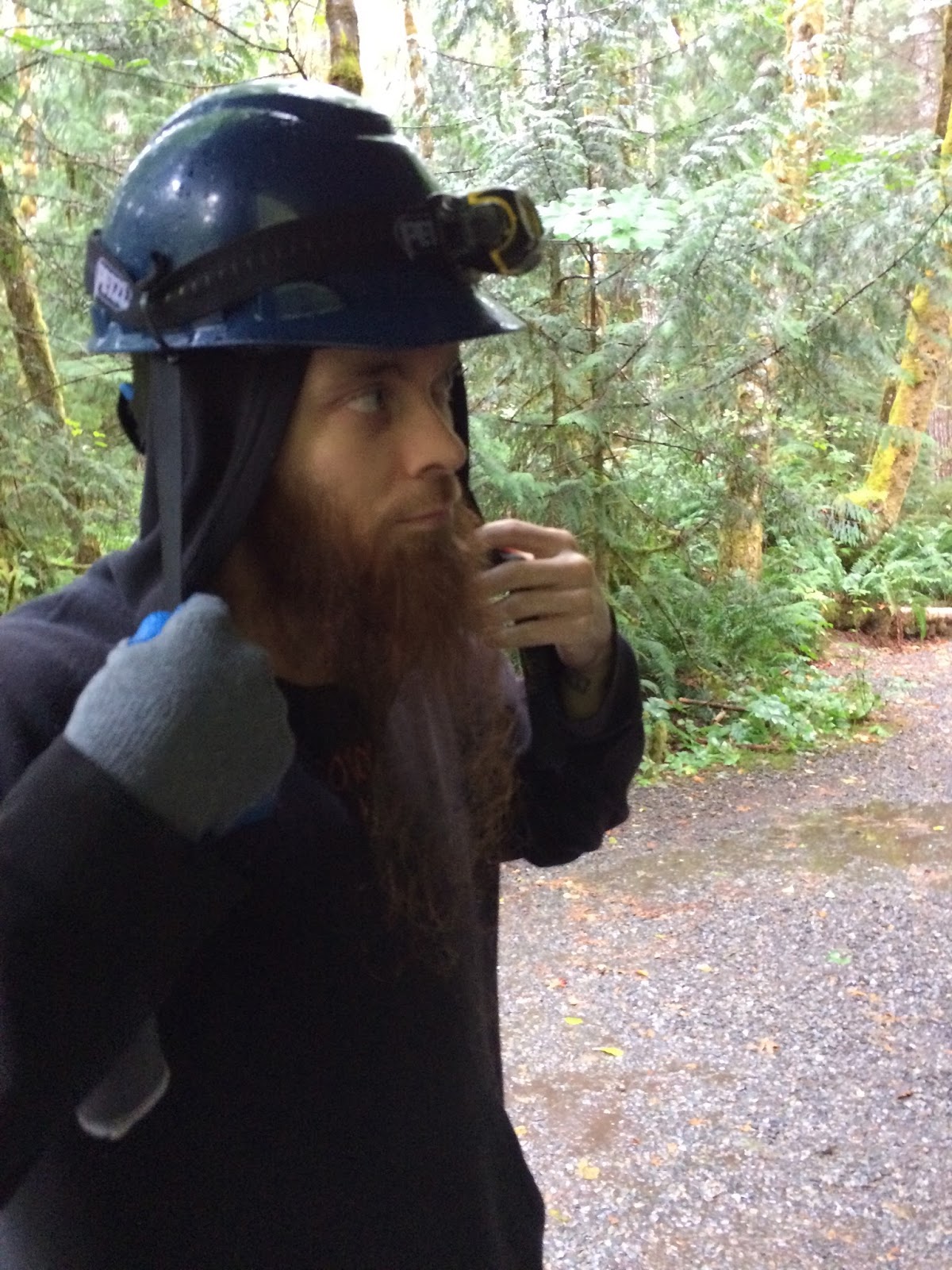 Getting ready.The area is beautiful and the caves undeveloped and natural, which we found exciting.But I learned something unexpected from the experience.Let me tell you about it . . .We went, first of all, for our son, who has Tourette’s and suffers from anxiety.The fact that he acceded to our wishes to explore the caves is a testament to his courage, his trust in us and/or his very good team of health professionals.Things started out well.We donned our protective gear and mugged for a couple of pictures. Then our guide started out with us trailing (pun intended) along behind him down the forest path. A couple of young women were in our group just ahead of us and when we got to the very narrow cave opening, the one put up her hands and said, “Nope. Can’t do it.” They were guided to a secondary cave a short distance away. One without the ‘turn-sideways-and-suck-in-your-gut’ entrance.I followed the guide, a little anxious for my son coming along behind me.But then we reached the first cave and there he was. (Handsprings are not encouraged inside these caves. Just FYI.)I had to keep my celebrating to a “Well done, Son!” and a smile.We continued on through the ‘mud room’ and the ‘boulder room’ and the ‘crystal room’.A lot of rooms.Crouching and sliding to get from some to others.And still my son stayed with us.Sometimes even leading.We saw rock formations that flowed and dripped.Myriad colours and shapes and sizes.Were told ‘not to touch that!’ or ‘Ooh, feel how cold this is!’Lots of things to look at and experience.A couple of times, I saw my son look upward toward the sky of stone above us.I did the same.Then realized that things down below were lots more interesting if I didn’t think about the tons and tons (and tons) of rock hanging over our heads.We made it through, unscathed and perhaps a little more knowledgeable than when we had gone in.And with an increased respect for my son’s courage.But then I thought of something else.Something that was only peripherally related to the caves we had just explored . . .