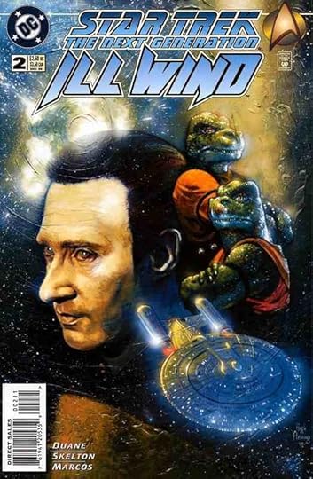 If it took Ill Wind perhaps longer than the average DC Star Trek: The Next Generation miniseries to get here with the first two issues predominant focus on Captain Picard, Deanna Troi and guest star the Mestral, it makes up for it in abundance in issue 3 with a lavish half of this book dedicated to Geordi, Worf and Doctor Crusher solving a mystery. Perhaps it's understandable why Diane Duane would default onto this approach, being as she was at the time likely more familiar (and perhaps comfortable) with the Original Series mode of Doing Things. And yet even so her choice of characters is interesting: Ill Wind starts out as an almost Piller-esque “Picard Story”, but parallels him with the imperious Mestral and gives an ample supporting role to Deanna Troi, which is a laudable emphasis on femininity the sausagefest writer's room on the Paramount lot would likely have felt uncomfortable with.