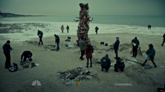 One of the show’s most emphatically memorable murder tableaus - probably the only one to give Eldon Stammetz and his mushroom people a run for their money. It also serves, however, as a case study in the schizoid nature of this season. More than anywhere else in the first season, “Trou Nourmand” demonstrates the degree to which these cases of the week are a charade. The totem pole murders are barely a feature of the episode, squared away with almost comical efficiency midway through the fourth act while the plot focuses instead on Will’s psychological collapse and new developments with Abigail.