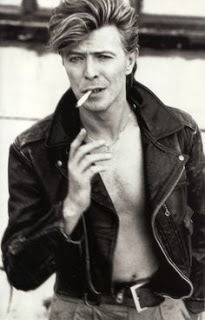 And I'll let you in on a little secret... He totally defined sexy for me. I already had a thing for thin men: lanky. And he moved in sort of a feline way—I see all the references to androgyny for him but that wasn't what I saw at all—he was angles and flow. His mismatched eyes made him intriguing. His crooked mouth looked just a little naughty. And then his voice... it almost has its own echo, doesn't it—like he is providing his own backup? (is that even possible?) It gave everything he sang a bit of a haunted sound—it was totally one-of-a-kind. So yeah... I admitted a long term college crush of mine was probably as deep an obsession because he reminded me of Bowie (build, mouth and eyes—he even played guitar and sang for me once). And the hubs had the Bowie build and naughty expressions going on when I first met him... But I won't blame Bowie for my romantic decision making... just what I was attracted to.