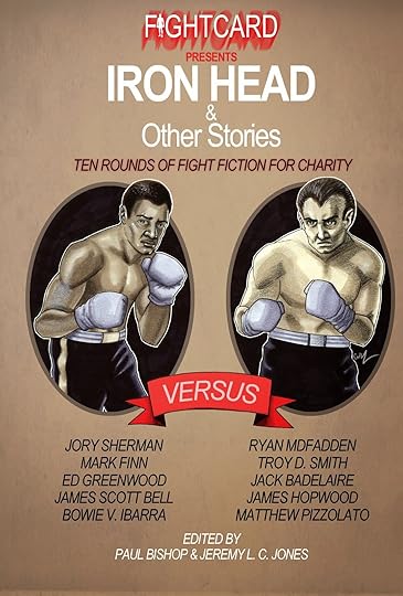Fight Card Presents: Iron Head & Other Stories is the first in a series of charity anthologies from the Fight Card authors cooperative – a writers community featuring many of today’s finest fictioneers, including Jory Sherman, Ryan McFadden, Mark Finn, Troy D. Smith, Ed Greenwood, Jack Badelaire, James Scott Bell, James Hopwood, Bowie V. Ibarra, and Matthew Pizzolato.