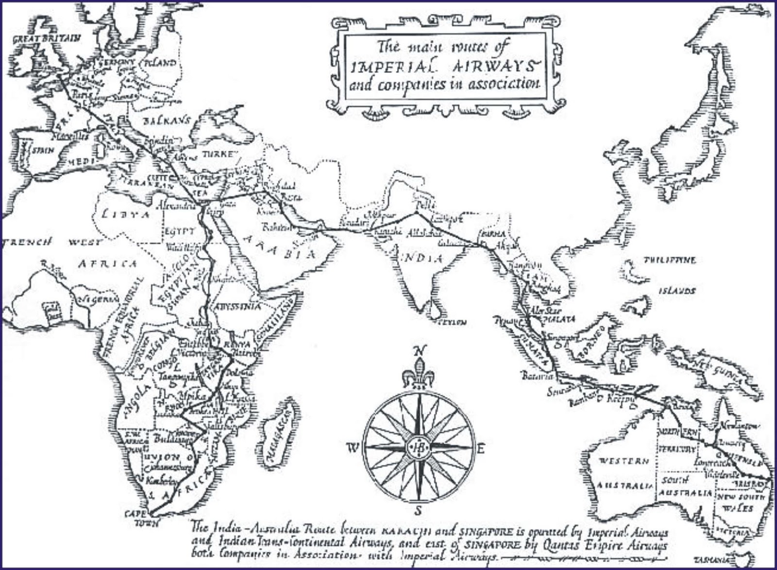 The Empire Route. Imagine, it'd take you about 2 weeks to fly all the way - at 100 mph!