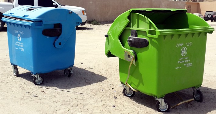Well, 'green day' is finally upon us! Sharjah's upped its green act with waste management company Bee'ah, with a goal of 'zero to landfill' being the stated aim. The new bins aren't the only sign of change around here: for years an integrated waste management policy has been rolled out with thousands of staff litter-picking, bin emptying, street cleaning and waste segregating. It's taken its time, but that tremendous effort has finally reached our street.