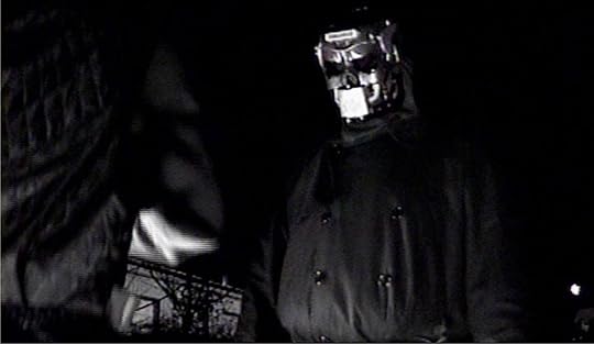 In a show of support of my new filmic aspirations, my parents bought me a video camera. I was thrilled and set out to draft my friends into my own amateur horror movies. I was still toying with the idea of merging horror and religion and set out to make an ‘80s style slasher flick with a twist. The original concept for Hitmen was simple: Jason Voorhees (of Friday the 13thfame) does great against half-naked camp counselors, but how would he fare against hardened hitmen with guns? I had a cheap plastic “blue skull” voice-changer mask that I bought on a lark at a Kay Bee Toys store some years prior and decided that would be the perfect frightening visage for my Jason-esque killer.