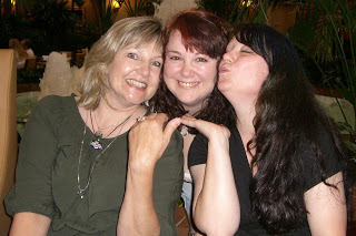 I don't have a picture of it, but imagine two women-one wanting to eat lunch, both more than a little tired (already), trying to figure out how to get to the Quiznos. I love Quiznos, BTW. Needless to say, we missed a turn, ended up across the freeway, and Linda McMaken and I had a freaking blast. We ended up at the Steak 'n' Shake where I swear she got the world's largest tea. But it was worth it. Somehow I ended up on the Welcoming Committee, which was so much fun, with Donna MacMeans, Desiree Holt, Keri Stevens, and a couple other ladies whose names (sadly) I've forgotten (sad because I loved working with them). We were instructed by Donna to pass out "virgin beads". Grin. Beads for those who were new to the con this past year. So I was one of the shouting people. "Who is the virgin? I want you! I want YOUR virginity!" Grin. I was very popular. Got a lot of blushes, too.