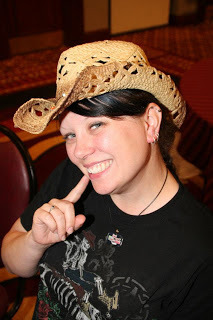 I did some pitching, some freaking out (try pitching to seven people. kinda scary), had some supper, listening to everyone else win prizes, donned a cowboy hat,